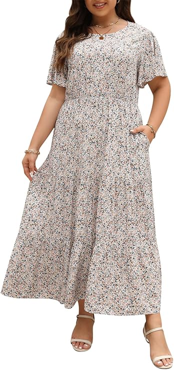 Nemidor’s plus size maxi dress combines a flattering layered flare with ditsy floral prints for a breezy, comfortable fit. Designed with pockets and soft fabric, it’s perfect for casual summer days and beyond.