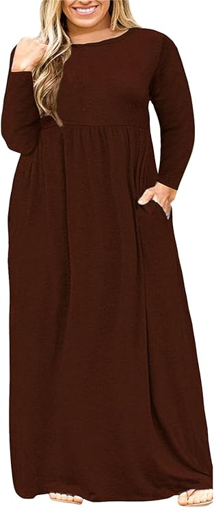 Designed for curvy women, Nemidor’s maxi dress combines comfort and style with a flattering cinched waist and convenient pockets. Made from soft, breathable polyester, it’s perfect for casual fall and winter wear.